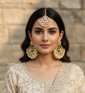 An elegant Chand-Bali kundan earrings with the most stunning festoon. The perfect accessory for your occasion. This earrings is handcrafted with love
