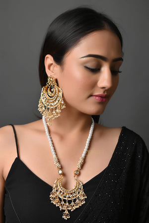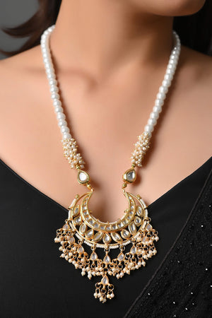 Kundan Chaandbali Pearl Pendant Set With Earrings