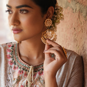 Styling: These are the perfect accessories to accentuate the elegance of your traditional outfit, furthermore, adding a perfect pop of color and edginess. The beautiful elements of the earrings go well with the saree or any Western dress. A statement earring is enough to make the entire outfit look amazing. It looks better with a solid color outfit or pastel outfit.