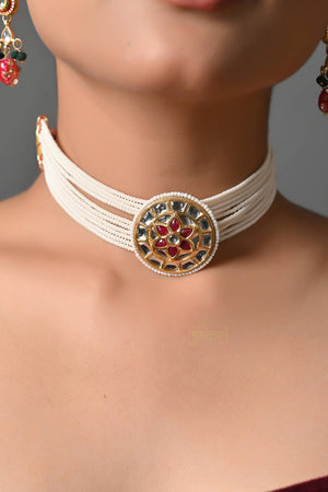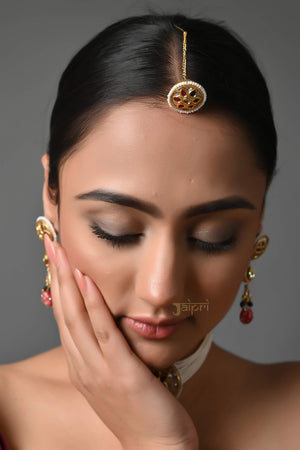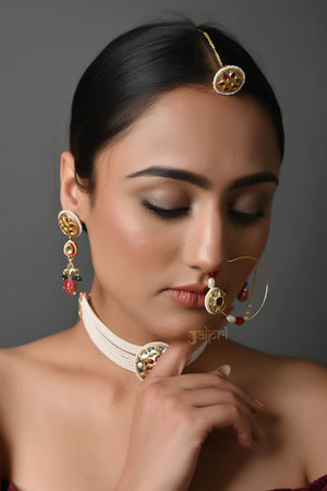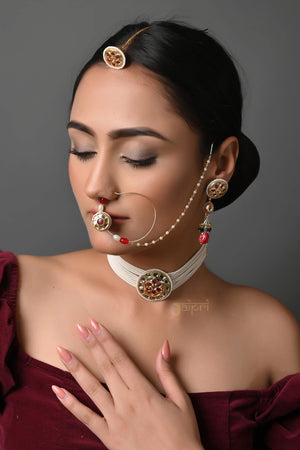 Kundan Choker Necklace With Earrings, Nath And Maang Tikka
