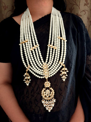 Kundan Long Beaded Seven Layered Necklace With Earrings