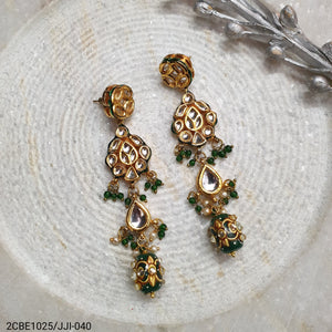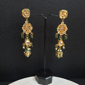 Kundan Long Earrings With Handpainted Beads
