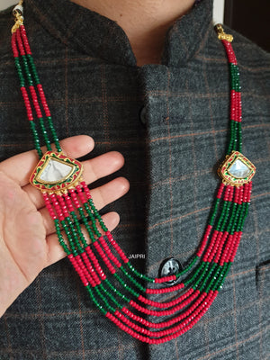 Styling: These are the perfect accessories to accentuate the elegance of your traditional outfit, furthermore, adding a perfect pop of color and edginess. The beautiful elements of the necklace go well with the sherwani or narrow jacket. A statement groom necklace is enough to turn the entire outfit look amazing. It looks better with a solid color outfit or pastel outfit.
