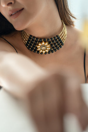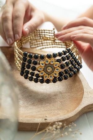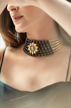 Kundan Meenakari Motif Black Choker Freesize Necklace