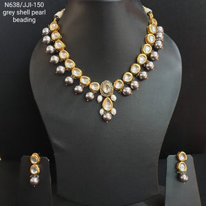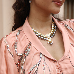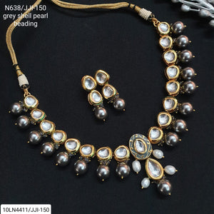 Kundan Meenakari Necklace With Grey Pearl Beading Along With Earrings