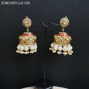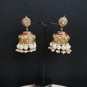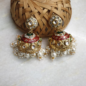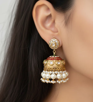 An elegant Kundan jhumki earring with the most stunning festoon. The perfect accessory for your occasion. These earrings are handcrafted with love