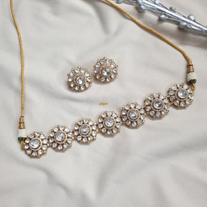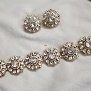 Elevate your style with this exquisite Designer Kundan polki Choker Necklace set. Its intricate craftsmanship and regal charm make it the perfect statement piece