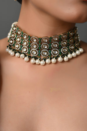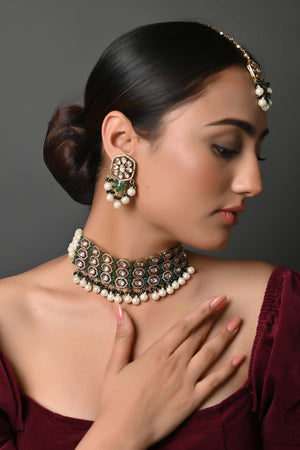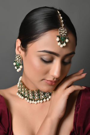 Kundan Polki Choker Necklace Set With Earrings And Maang Tikka