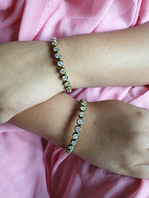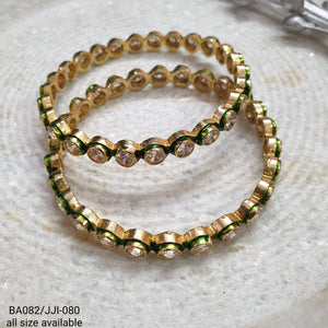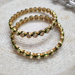 Kundan Stone Green Meenakari Bangles