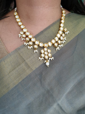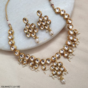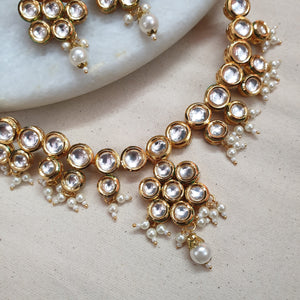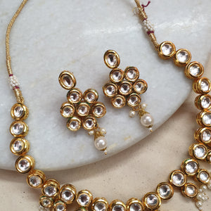 Experience opulence with our Kundan Necklace Set, complete with dazzling earrings. The intricate radiant stones make this ensemble truly regal