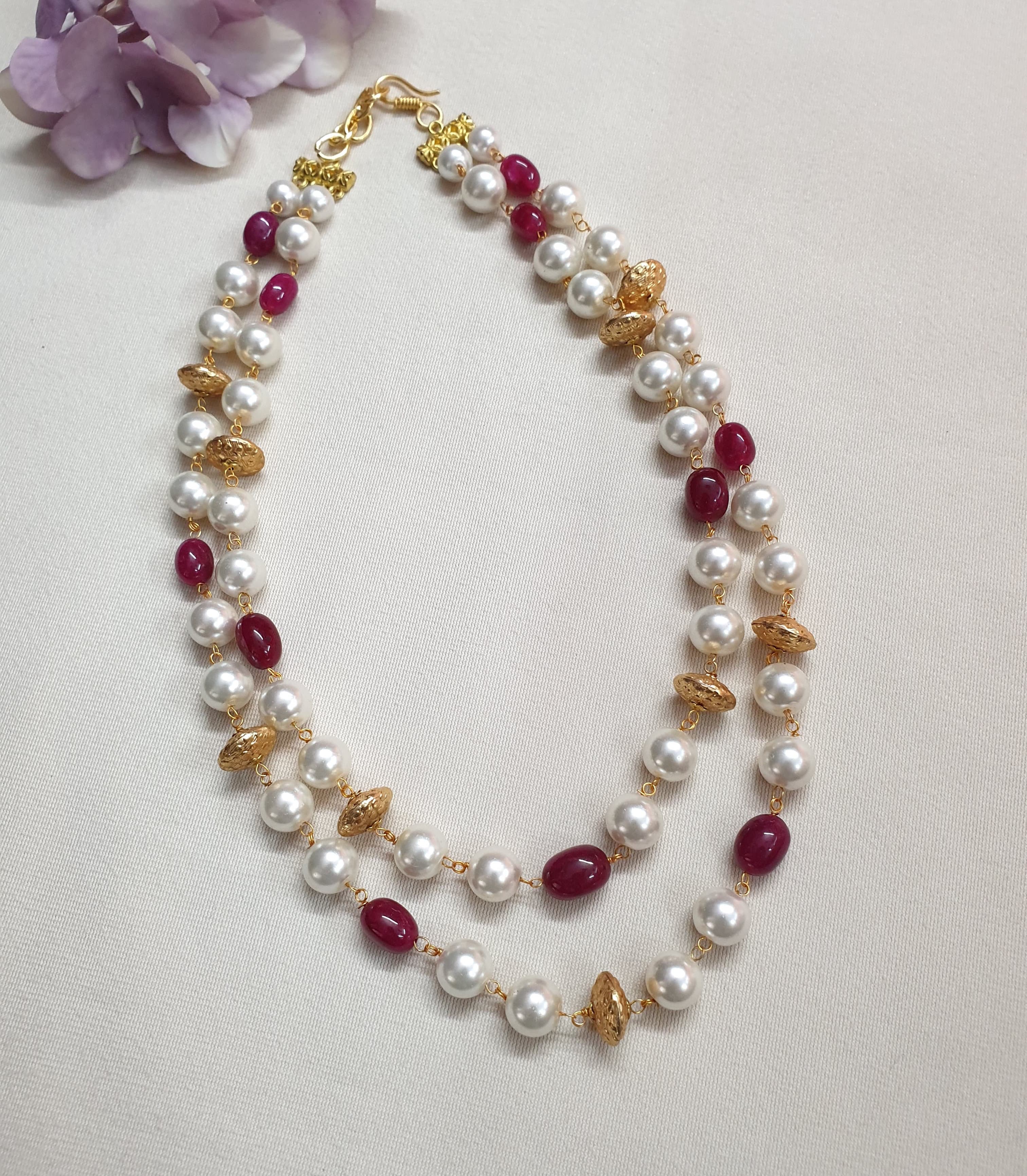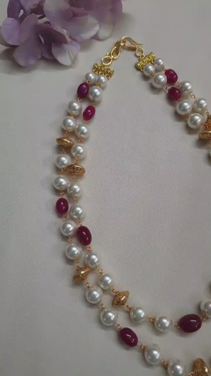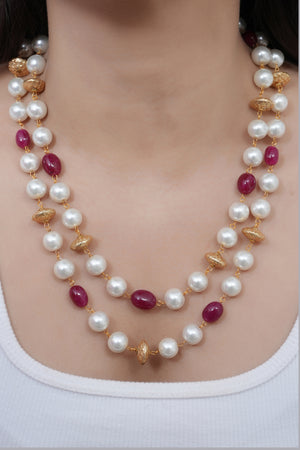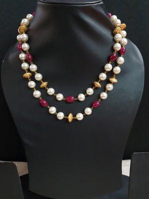 Red Stone and Pearl Beaded Necklace