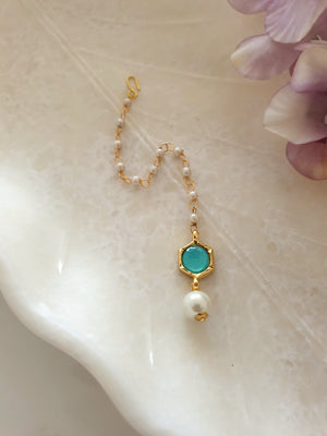 Light Blue Stone Meenakari Pearl Beaded Maang Tikka
