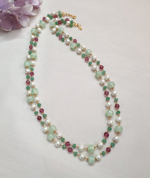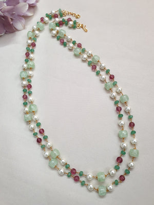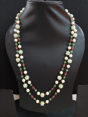 Light Green Stone Double Layered Beads Pearl Long Mala