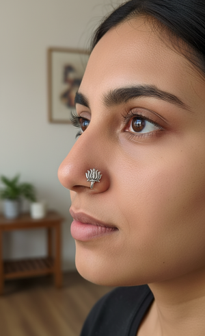 An elegant lotus nose pin the most stunning festoon. The perfect accessory for your occasion. This nose pin is handcrafted with love
