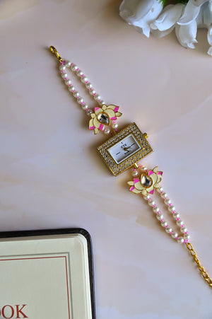 Enhance your style with our lotus and pearl beads wristwatch. This exquisite timepiece features intricate designs and craftsmanship, perfect for any occasion