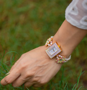 Material: 22k Gold Plated Silver Alloy, Jadau Beads, Quartz Watch