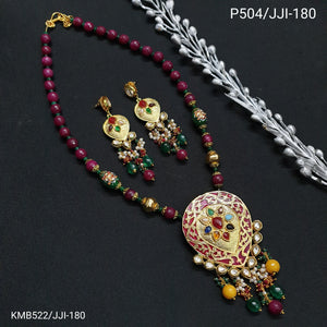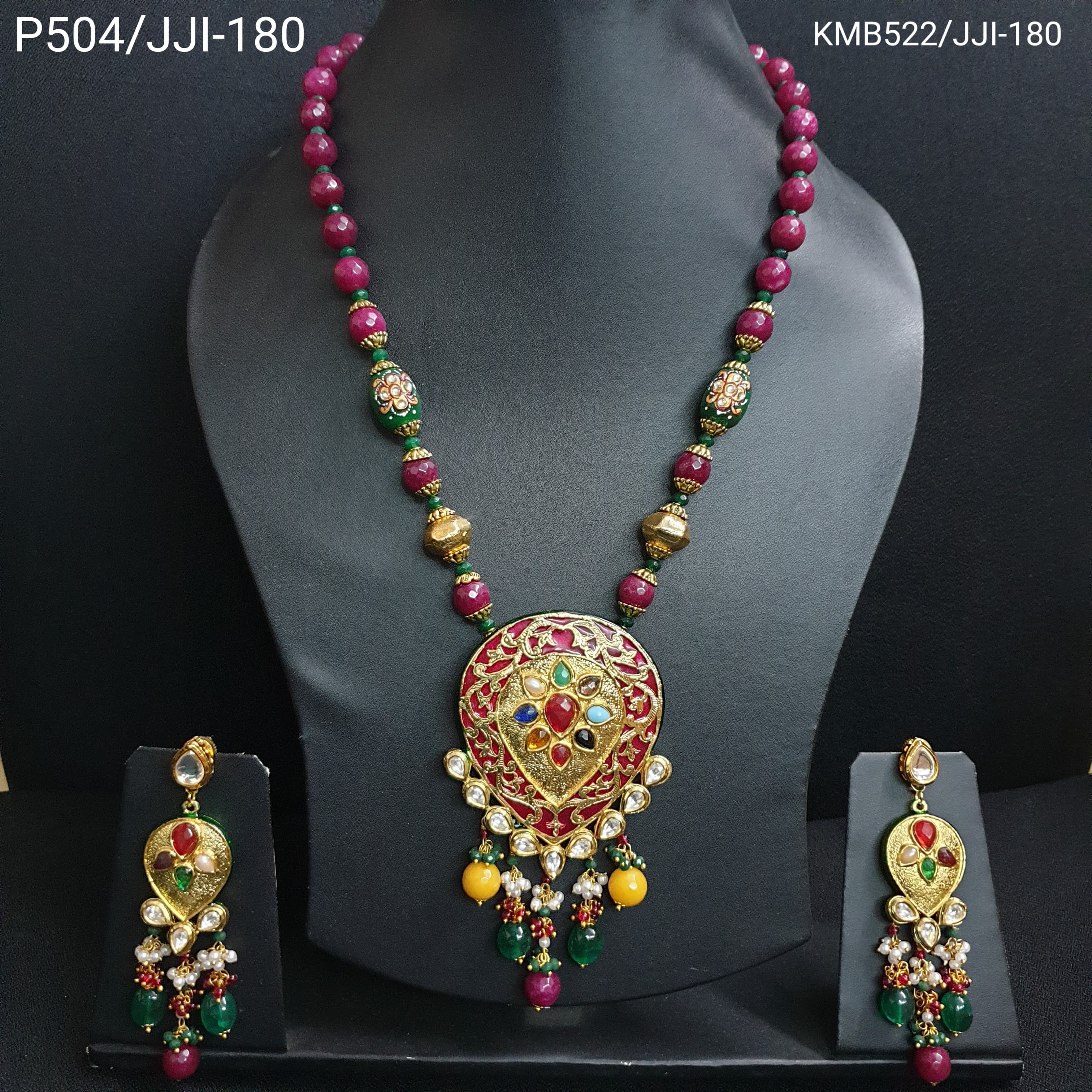 An elegant magenta beads stone meenakari pendant with the most stunning festoon. The perfect accessory for your occasion. This necklace is handcrafted with love