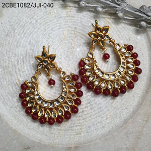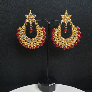 Maroon Beaded Kundan Chandbali Earrings