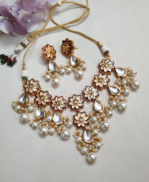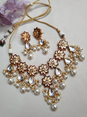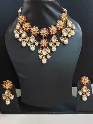 Maroon Floral Kundan Meenakari Necklace Set With Earrings