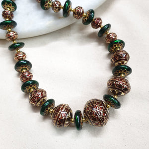 An elegant designer meenakari necklace with the most stunning festoon. The perfect accessory for your occasion. This necklace is handcrafted with love