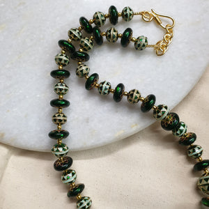 An elegant designer meenakari necklace with the most stunning festoon. The perfect accessory for your occasion. This necklace is handcrafted with love