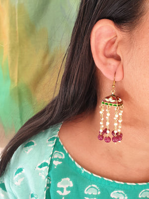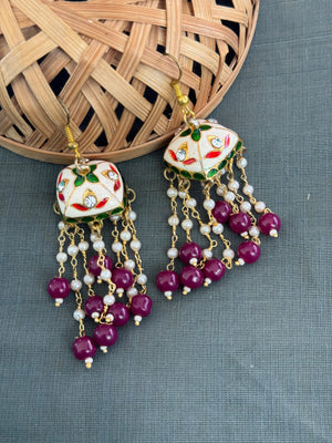 An elegant meenakari earring with the most stunning festoon. The perfect accessory for your occasion. This earrings are handcrafted with love