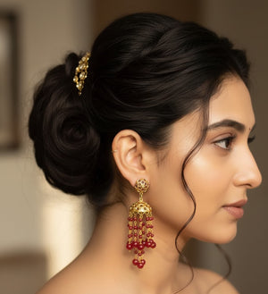 Styling: These are the perfect accessories to accentuate the elegance of your traditional outfit, furthermore, adding a perfect pop of color and edginess. The beautiful elements of the earrings go well with the saree or any Western dress. A statement earring is enough to make the entire outfit look amazing. It looks better with a solid color outfit or pastel outfit.