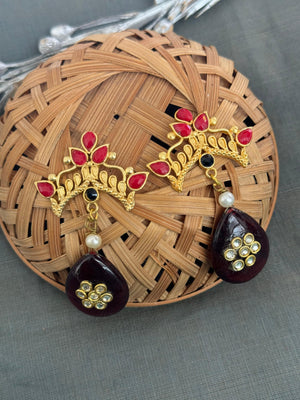 Maroon Stone Gold Matte Drop Earrings