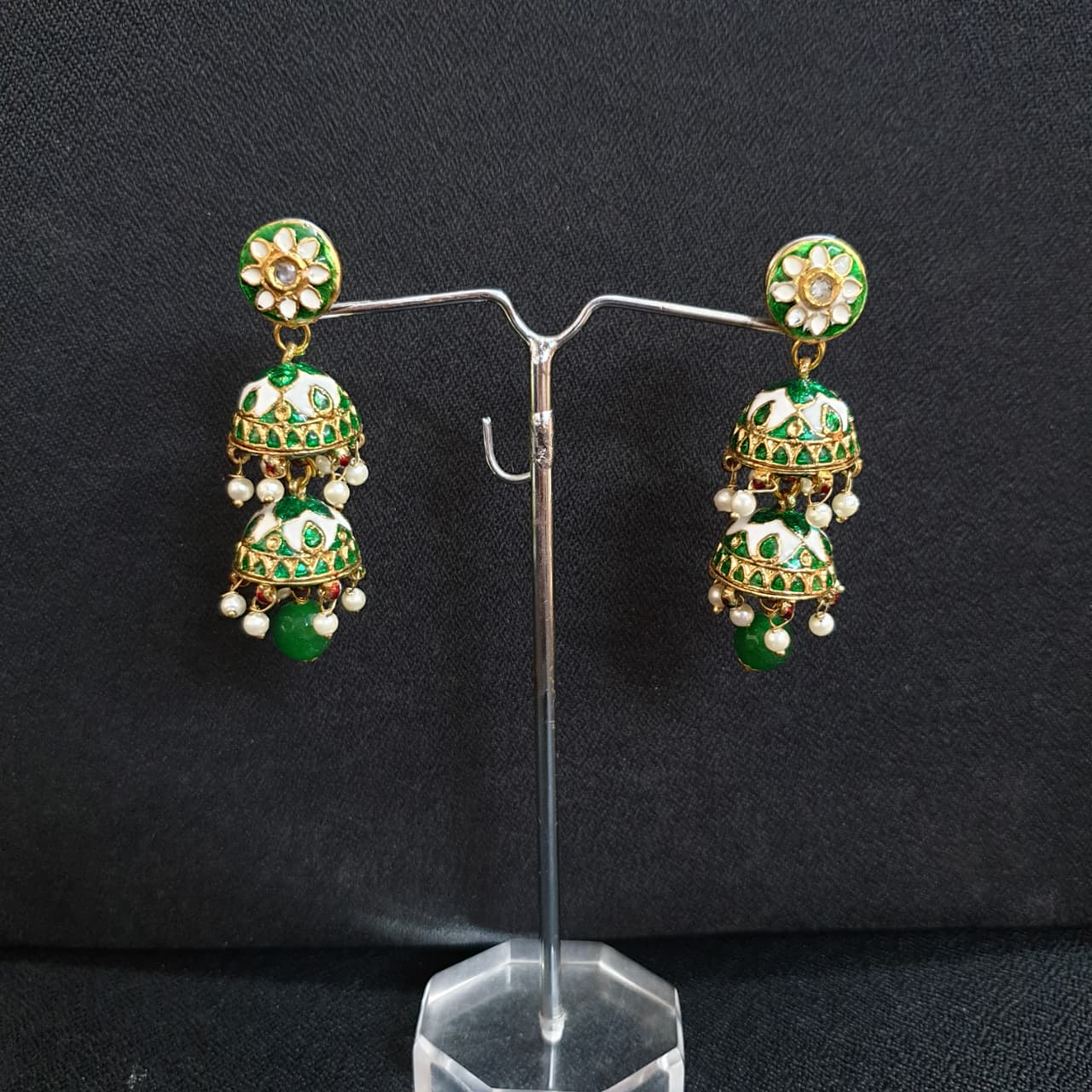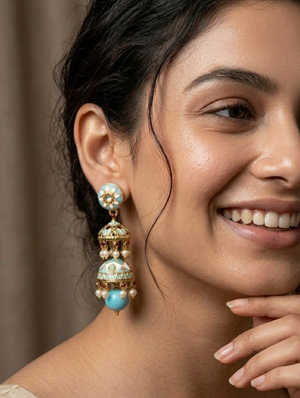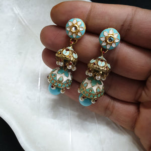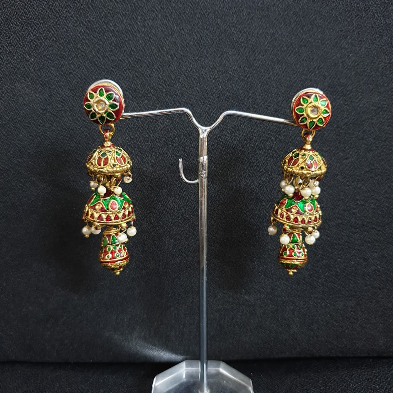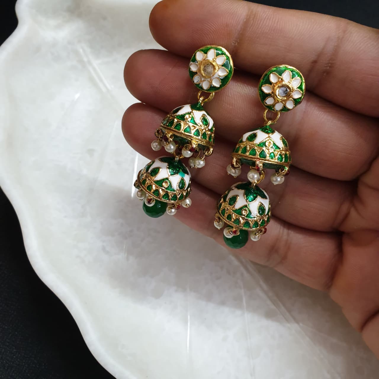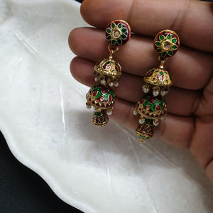 An elegant meenakari jhumki earring with the most stunning festoon. The perfect accessory for your occasion. These earrings are handcrafted with love