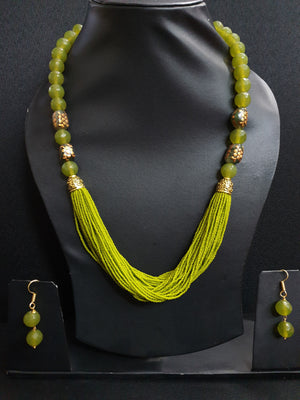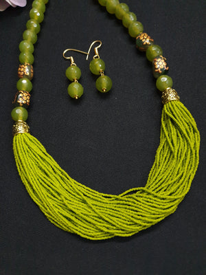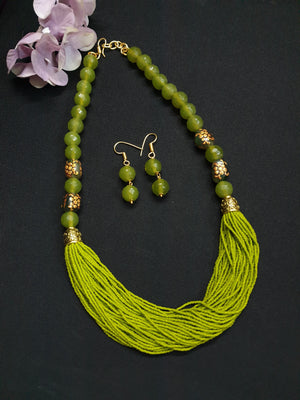 Mehendi Green Seed Bead Hanpainted Stone Necklace Set