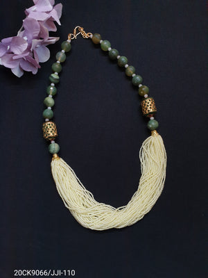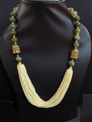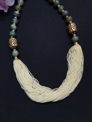 Mehendi Green Stone Pearl Seed Bead Necklace Set