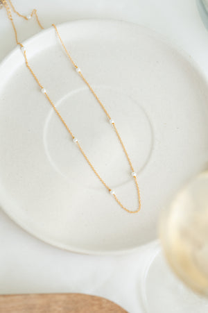 Whether you’re styling for work, brunch, or a date night, this dainty pearl necklace is the go-to accessory to elevate your look.