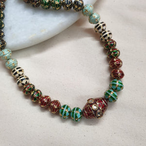 An elegant designer meenakari necklace with the most stunning festoon. The perfect accessory for your occasion. This necklace is handcrafted with love