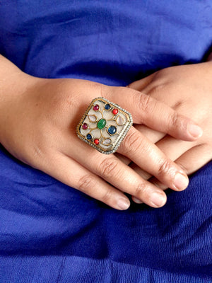 Multi Color Stone Mother of Pearl Adjustable Ring