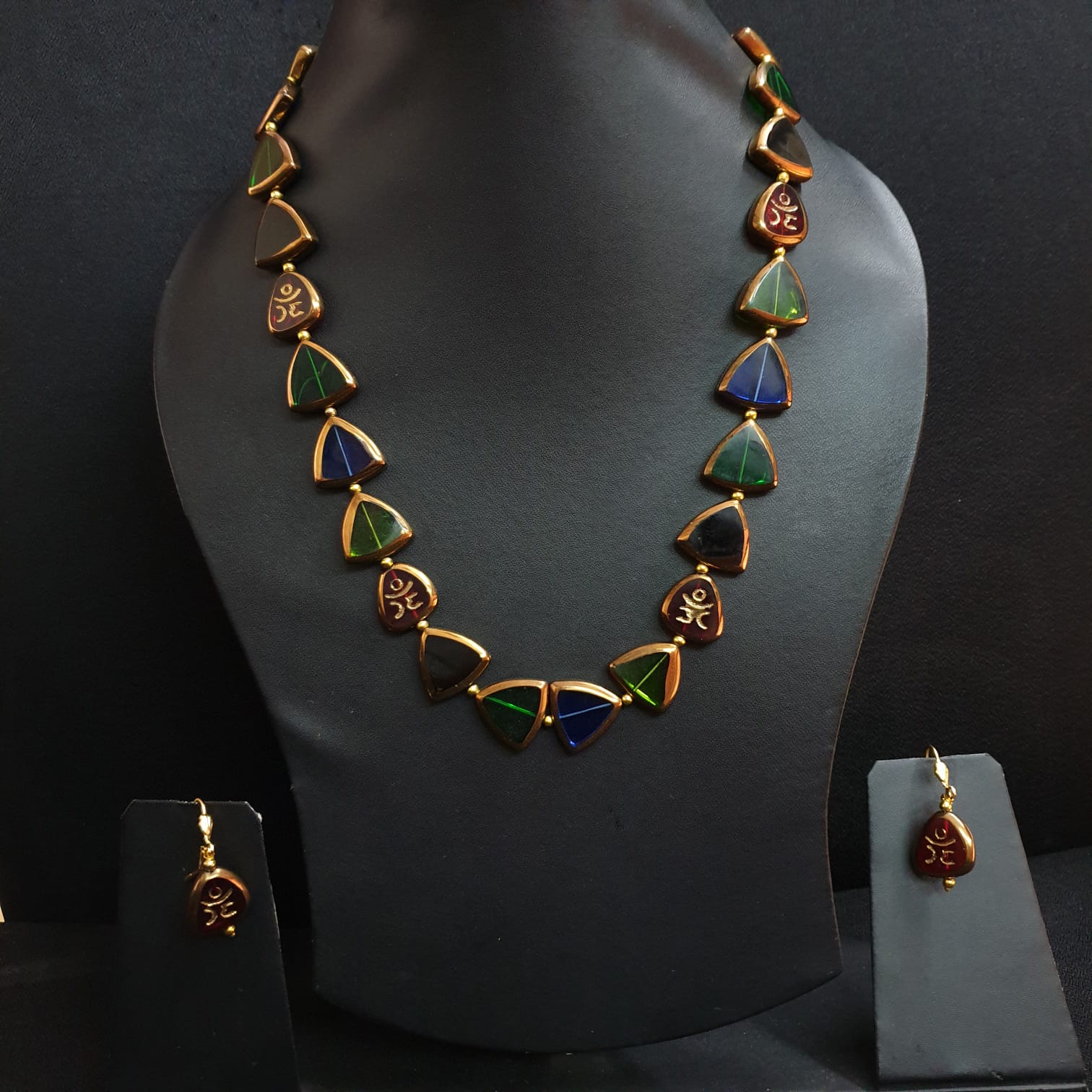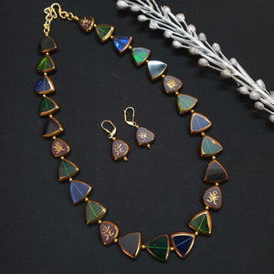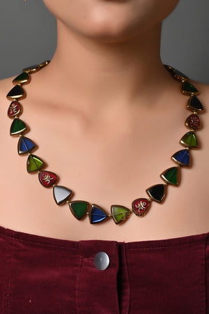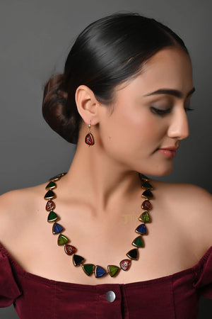 Multi Color Triangle Shape Necklace With Earrings