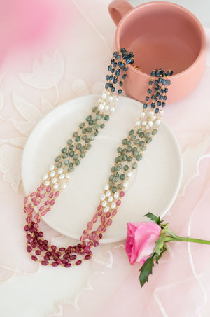 Celebrate tradition with elegance in this handcrafted festive necklace. Featuring a pearl and multi accents, and a pearl-beaded chain interlinked with pearl & multi beads, this necklace is a true work of art.