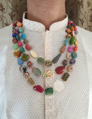 Multi Stone Beaded Groom Jewellery Set