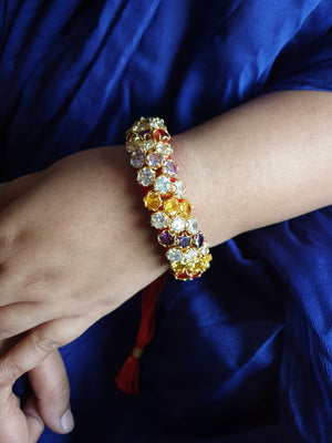Styling: These are the perfect accessories to accentuate the elegance of your traditional outfit, furthermore, adding a perfect pop of color and edginess. The beautiful elements of the bangle go well with the saree or any Western dress. A statement bangle is enough to make the entire outfit look amazing. It looks better with a solid color outfit or pastel outfit.