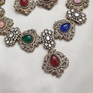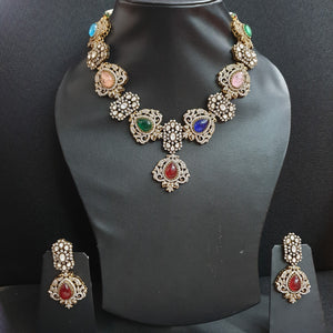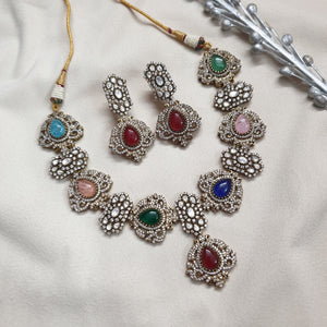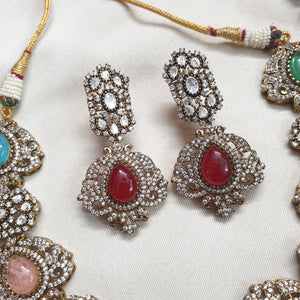 Multicolor AD Polki Necklace Set With Earrings