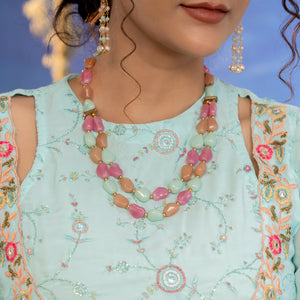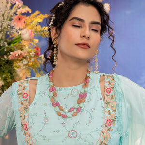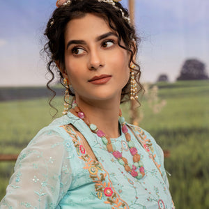 Styling: These are the perfect accessories to accentuate the elegance of your traditional outfit, furthermore, adding a perfect pop of color and edginess. The beautiful elements of the necklace go well with the saree or any western dress. A statement necklace is enough to turn the entire outfit look amazing. It looks better with a solid color outfit or pastel outfit.