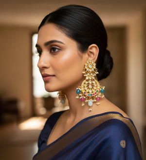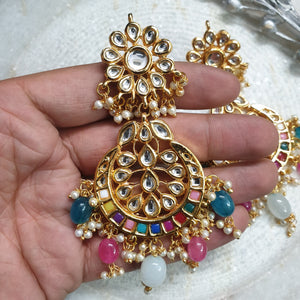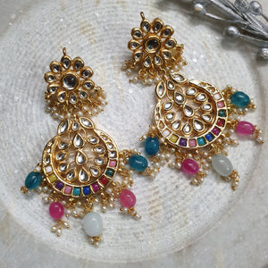Multicolor Kundan Chandbali Earrings