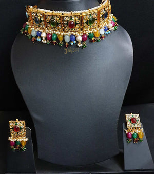 Multicolor Meenakari Floral Choker With Earrings