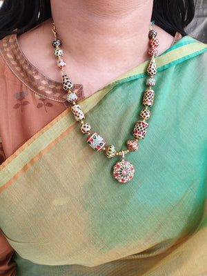 Styling: These are the perfect accessories to accentuate the elegance of your traditional outfit, furthermore, adding a perfect pop of color and edginess. The beautiful elements of the necklace go well with the saree or any western dress. A statement necklace is enough to turn the entire outfit look amazing. It looks better with a solid color outfit or pastel outfit.