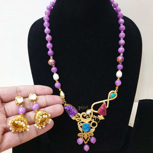 Multicolor Stone Fusion Unique Pendant With Jhumki Earrings