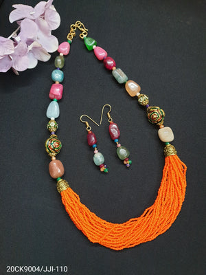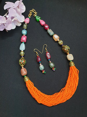 Multicolor Stone Orange Seed Necklace Set