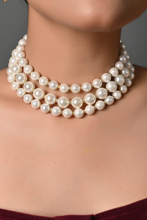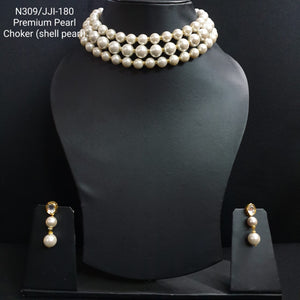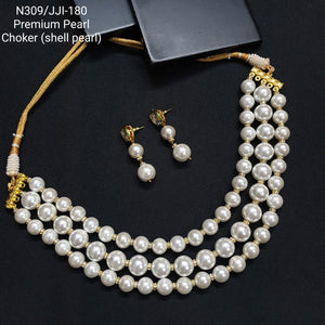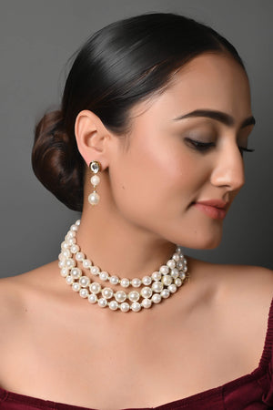 Multilayered Shell Pearl Choker Necklace With Earrings