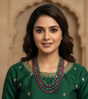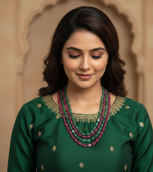 Pink & Emerald Green Beads Multilayered Stone Necklace