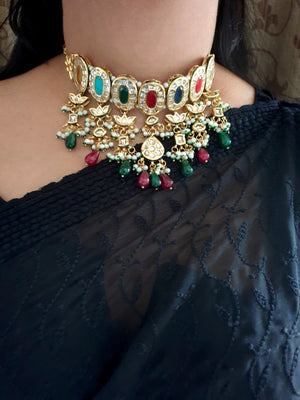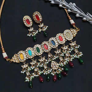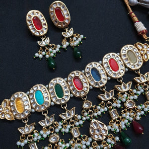 Navratan Kundan Jadau Choker Necklace Set With Earrings