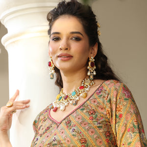 Styling: These are the perfect accessories to accentuate the elegance of your traditional outfit, furthermore, adding a perfect pop of color and edginess. The beautiful elements of the necklace go well with the saree or any Western dress. A statement necklace is enough to make the entire outfit look amazing. It looks better with a solid color outfit or pastel outfit.