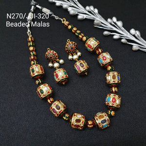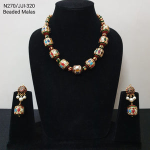 Navratana Jadau Handpainted Beads Necklace With Earrings